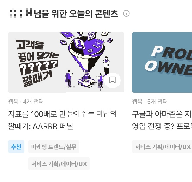 어플 상에 공개된 것만 봤을 때 콘텐츠를 본 사람 수, 만족도, 분야, 읽는 데 걸린 시간, 콘텐츠를 읽은 직군 등 다양한 정보를 수집한다. 고객은 시간이 많지 않고 정보를 효율적으로 얻고 싶어한다. 이런 고객을 위해 퍼블리는 수집한 데이터를 바탕으로 다양한 방식으로 정보를 큐레이션하여 고객이 효과적으로 공부할 수 있도록 돕는다.
