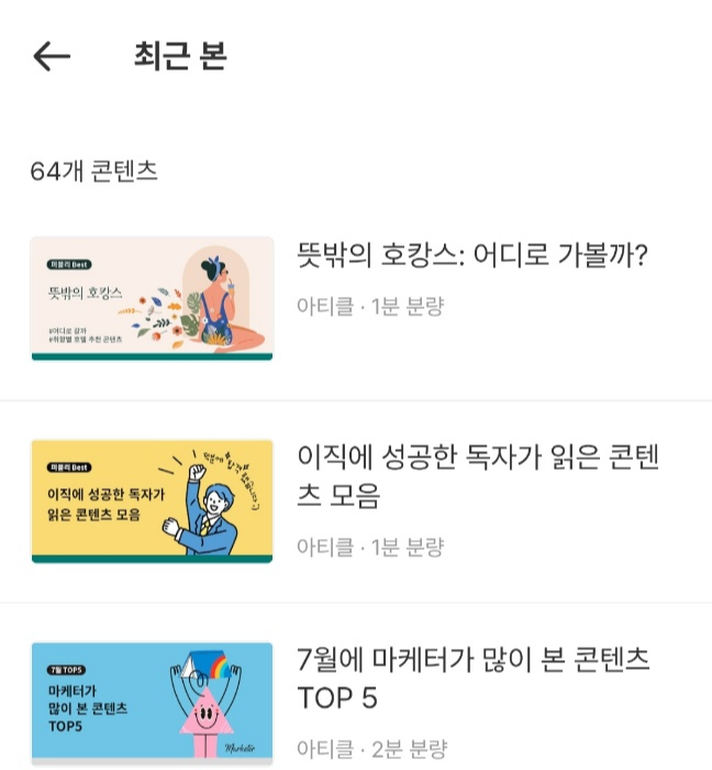 구조만 놓고 보았을 때 퍼블리는 굉장히 심플한 플랫폼이다. 거의 모든 항목들이 '독자가 콘텐츠를 더 많이 읽게 하기 위해'라는 하나의 목적을 위해 존재하며, 거의 모든 항목을 클릭하면 결국 콘텐츠로 향한다. 하나의 링크에 쌓아둔 콘텐츠들을 잘 큐레이션하여 고객에게 흥미를 유발하고 클릭하게끔 유도하는 것이 퍼블리라는 플랫폼의 핵심이다.